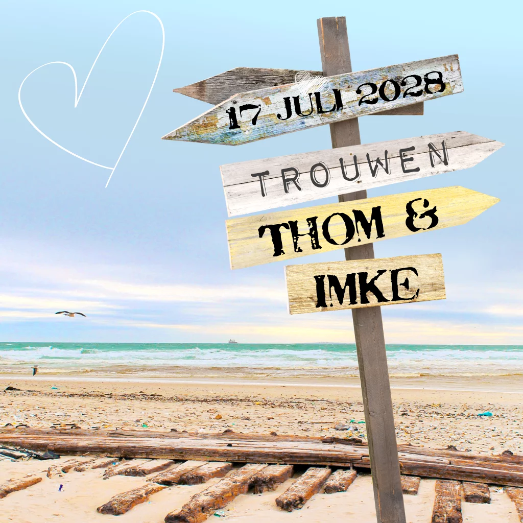 Nodig al je gasten uit met deze leuke en zonnige kaart met wegwijzer.