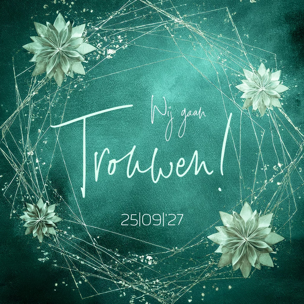 Trouwkaart sier petrol groen bloemen
