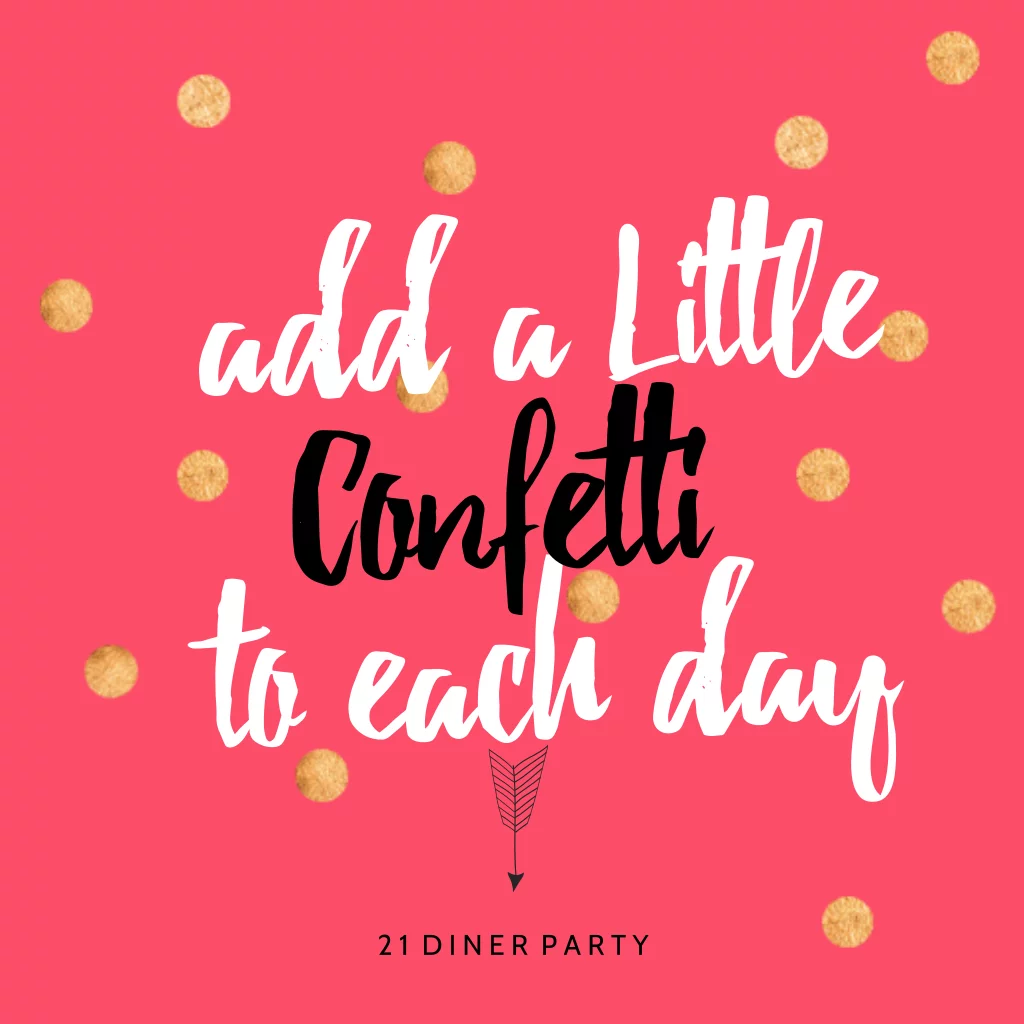 Felicitatiekaart verjaardag voor je eenentwintig diner in hippe kleur roze en met vrolijke typografie en gouden en roze stipjes