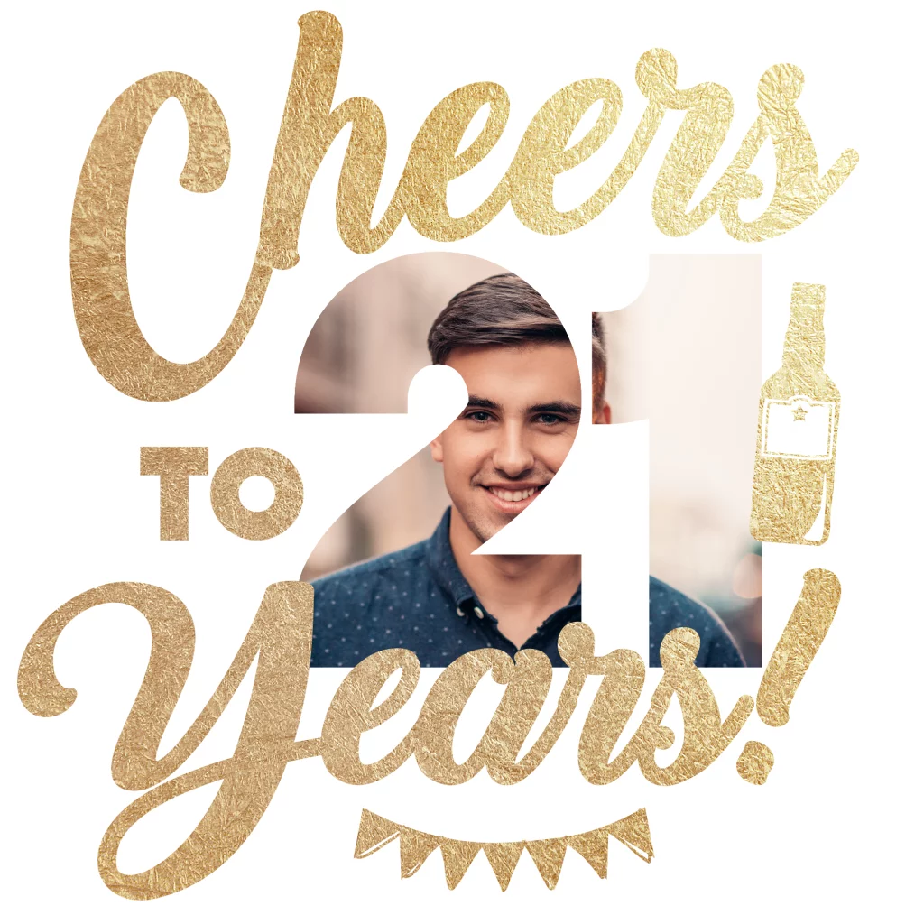 Feestelijke uitnodiging voor een 21 diner. Mooie gouden letters met de 21 als een uitgesneden fotolijst. Gaaf met een gouden envelop. Maak het af met een sluitzegel.