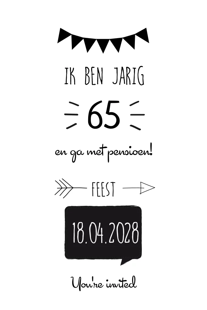 Deze bijzondere leeftijd verdient een origineel kaartje. Nodig familie en vrienden uit met deze uitnodigingskaart voor je vijfenzestigste verjaardag.