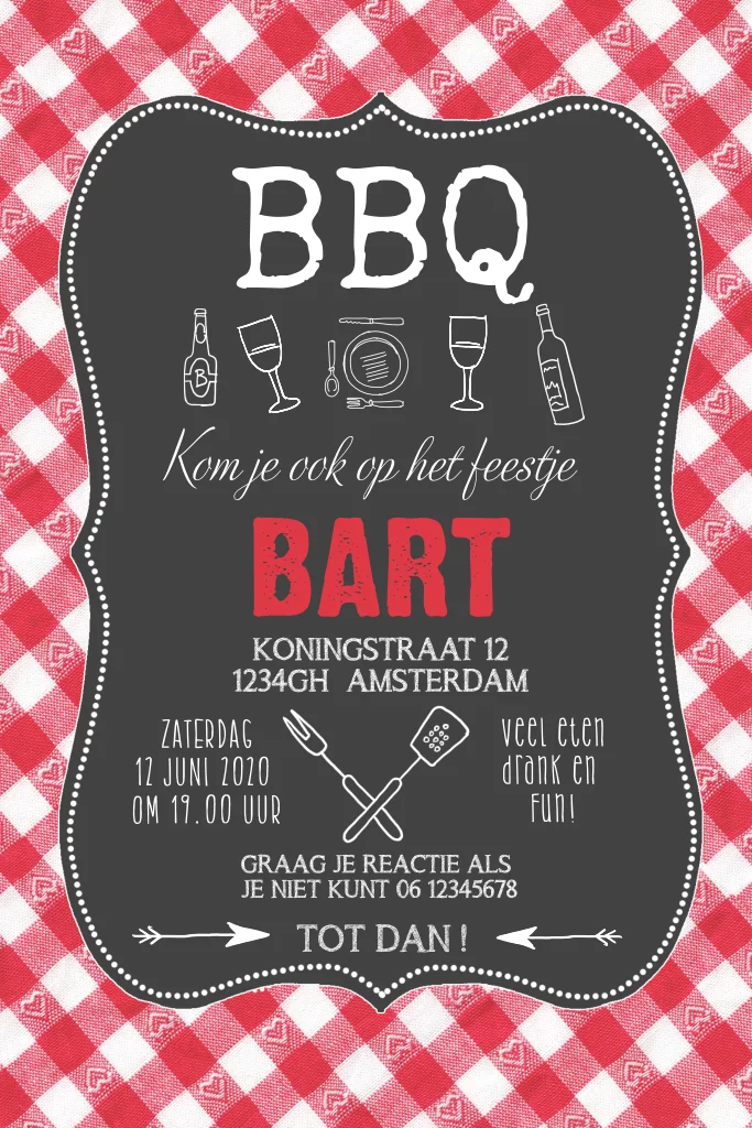 Uitnodiging barbecue en tuinfeest met ruitjes