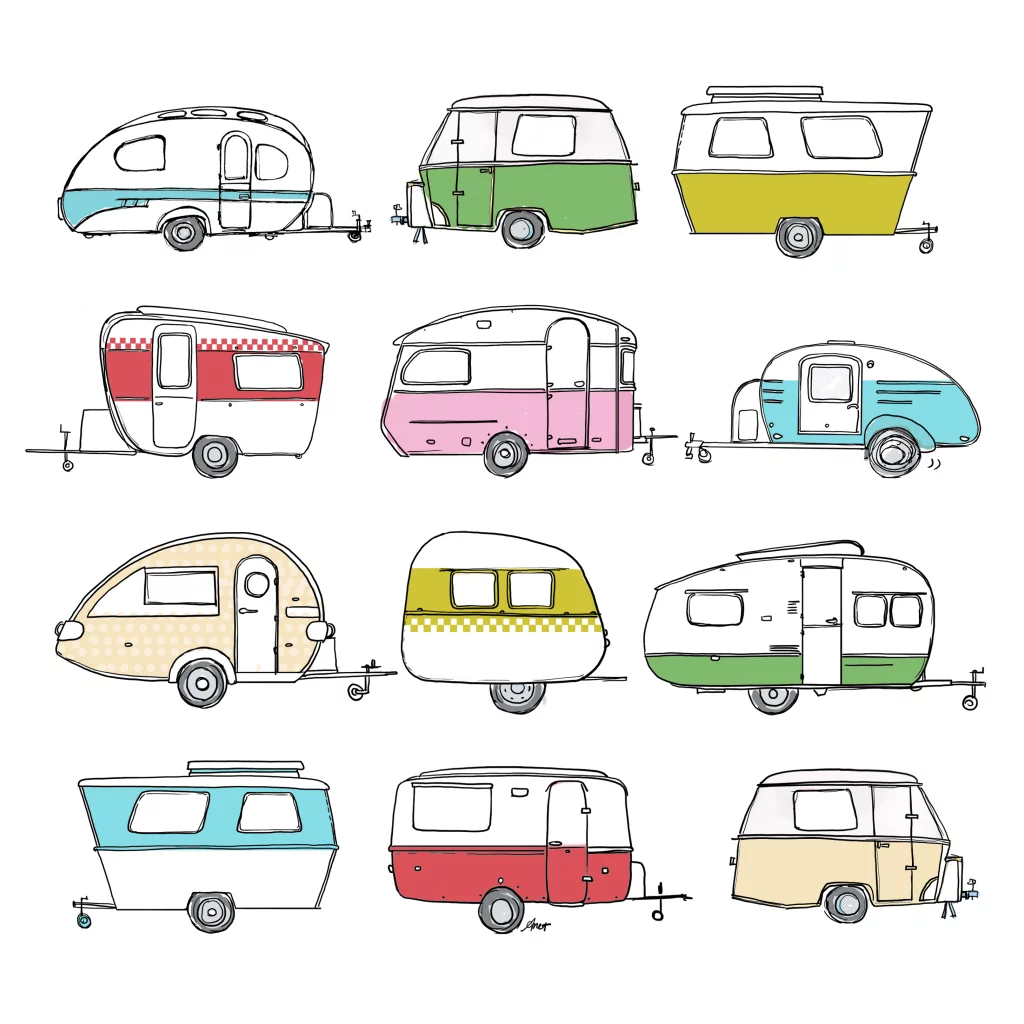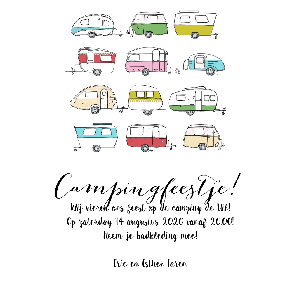 Grappige hippe uitnodigingskaart met retro caravans