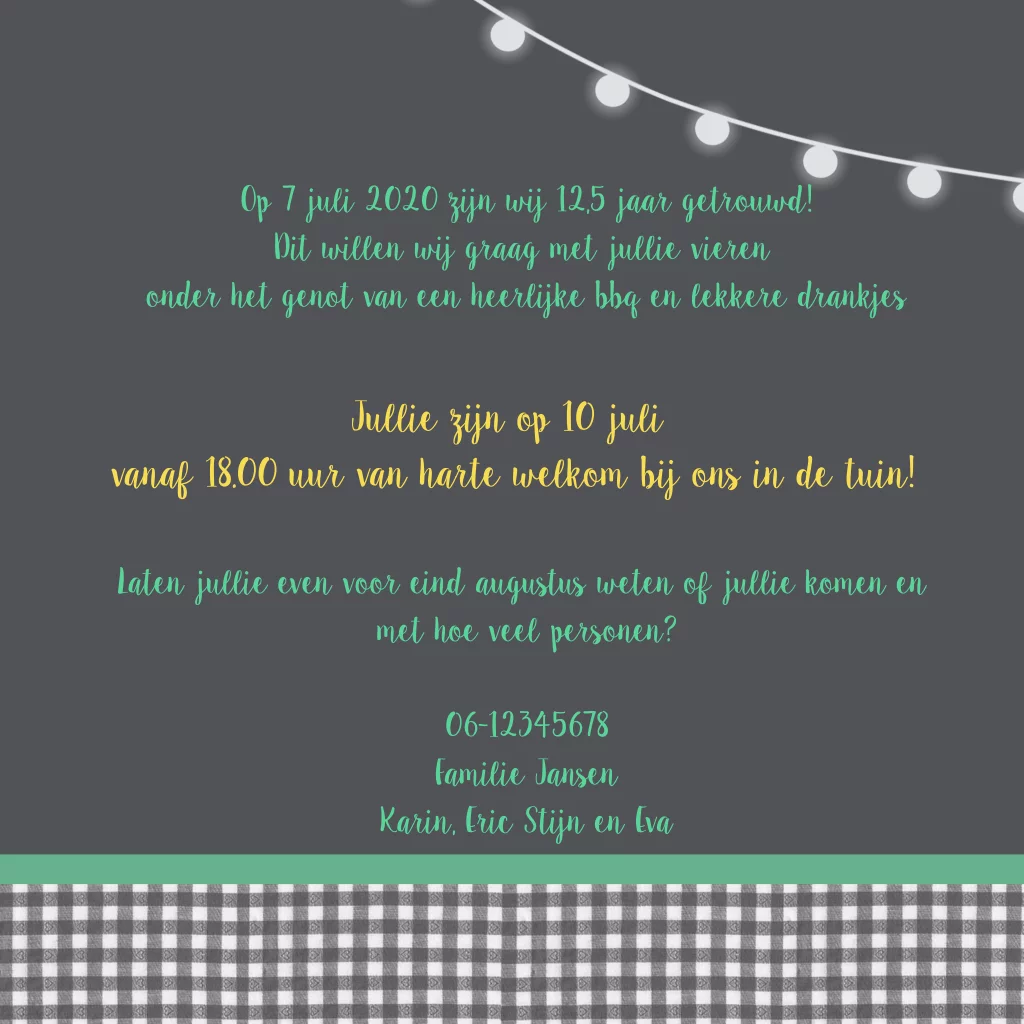 Uitnodiging tuinfeest met bbq met lampjes biertje