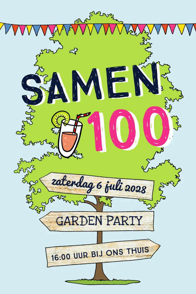Uitnodiging verjaardag samen 100 in de tuin