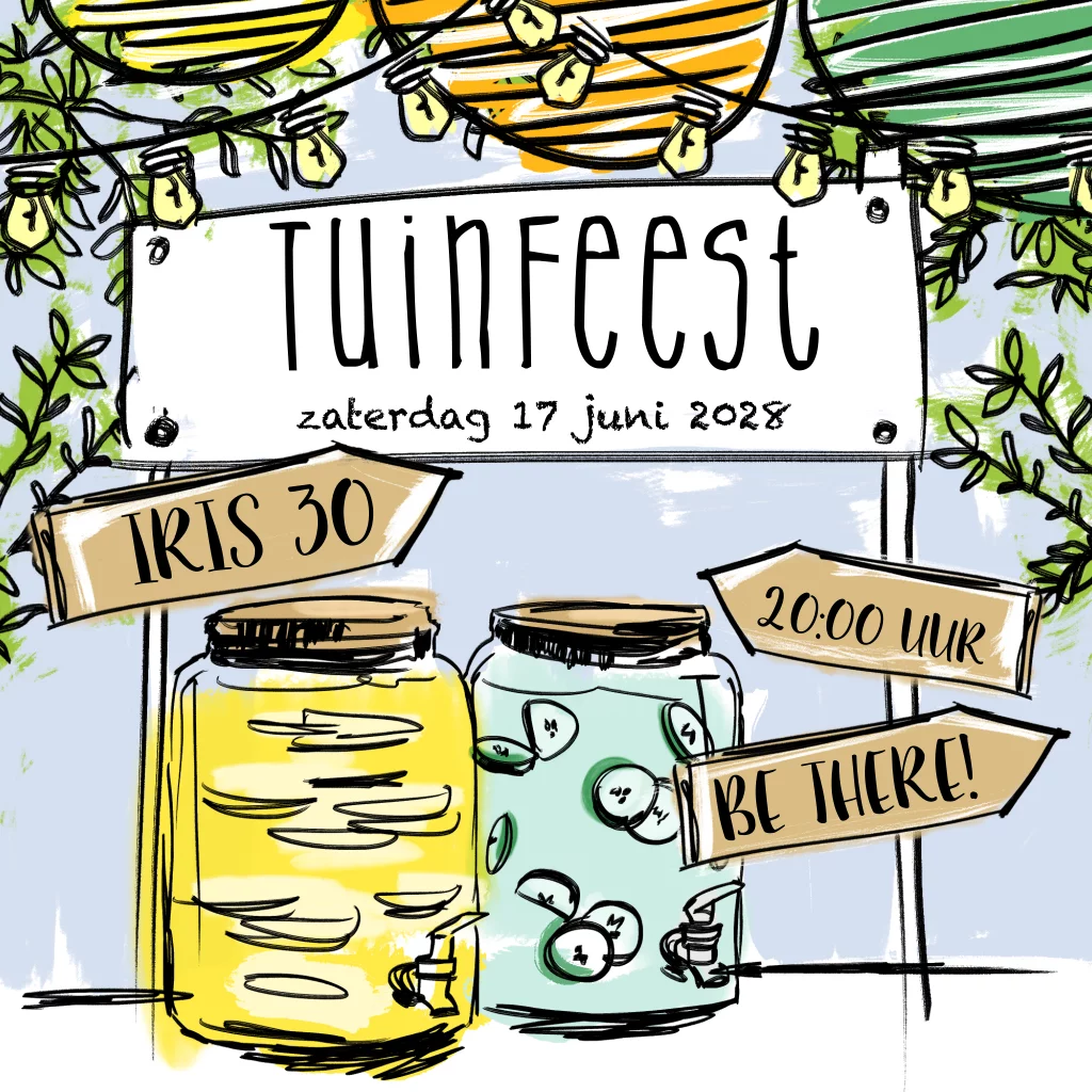 Gaaf geillustreerde uitnodiging voor een tuinfeest