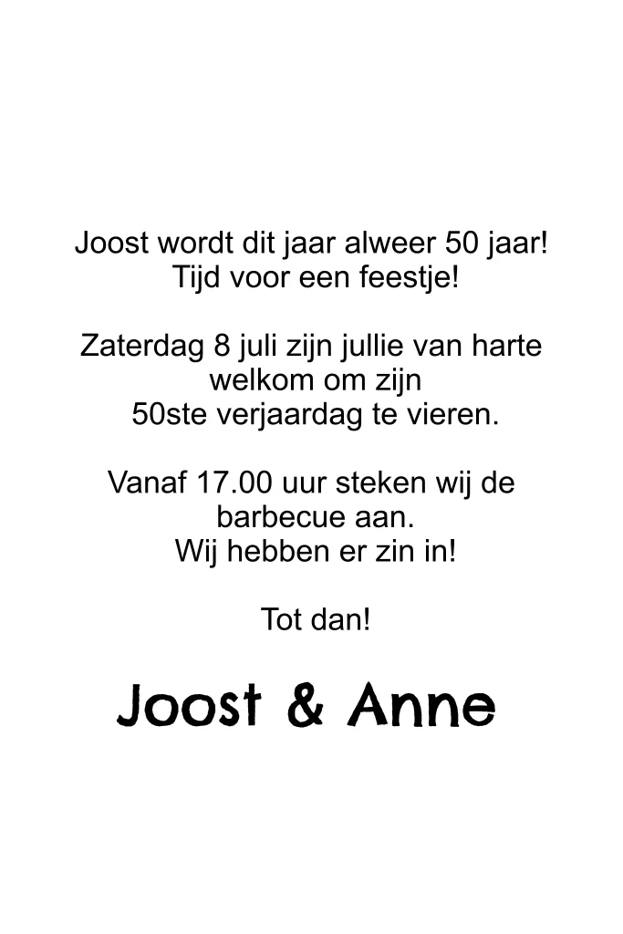 Stoere uitnodiging voor een gezellig verjaardagsfeestje in eigen tuin. Pas de tekst geheel naar wens aan.