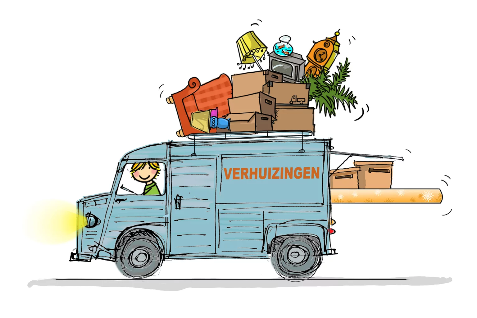 Verhuiskaart met HY busje blauwgrijs