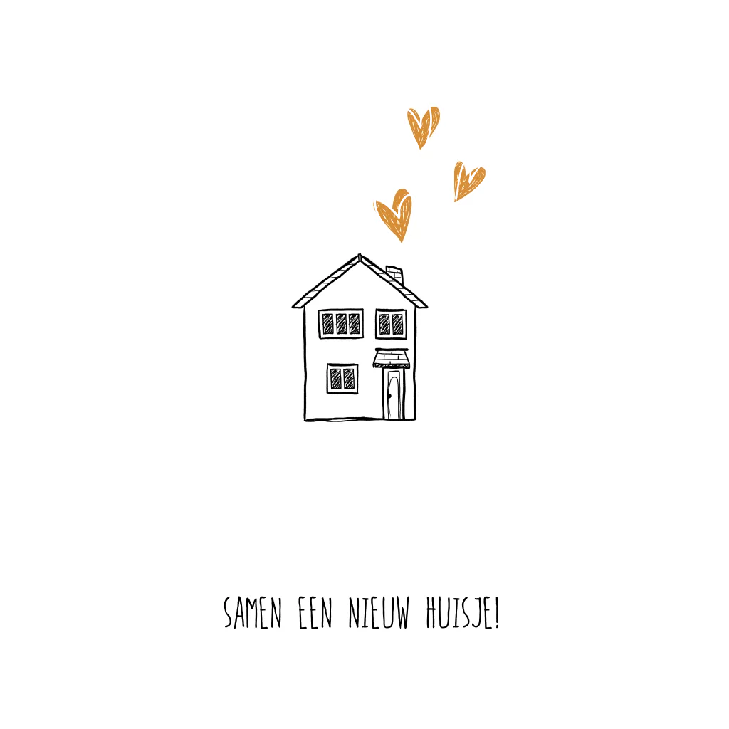 Clean en simpel verhuiskaartje. Leuk met de toevoeging van het getekende huisjes en gouden hartjes. Op achter plaats je je nieuwe adres. Gaaf met een gouden envelop en bijpassende sluitzegel.