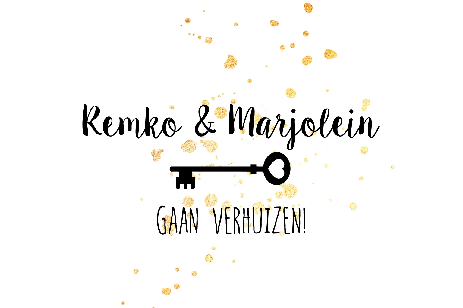 Verhuiskaart met gouden spetters en sleutel