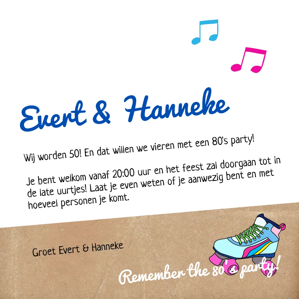 Time for an 80s party! En om dit feestje extra vrolijk te maken... vier jullie verjaardagen samen! Deze vrolijke kraft kaart met rolschaats is perfect om daar bij te gebruiken. Leuk met een kraft of roze envelop om het compleet te maken.