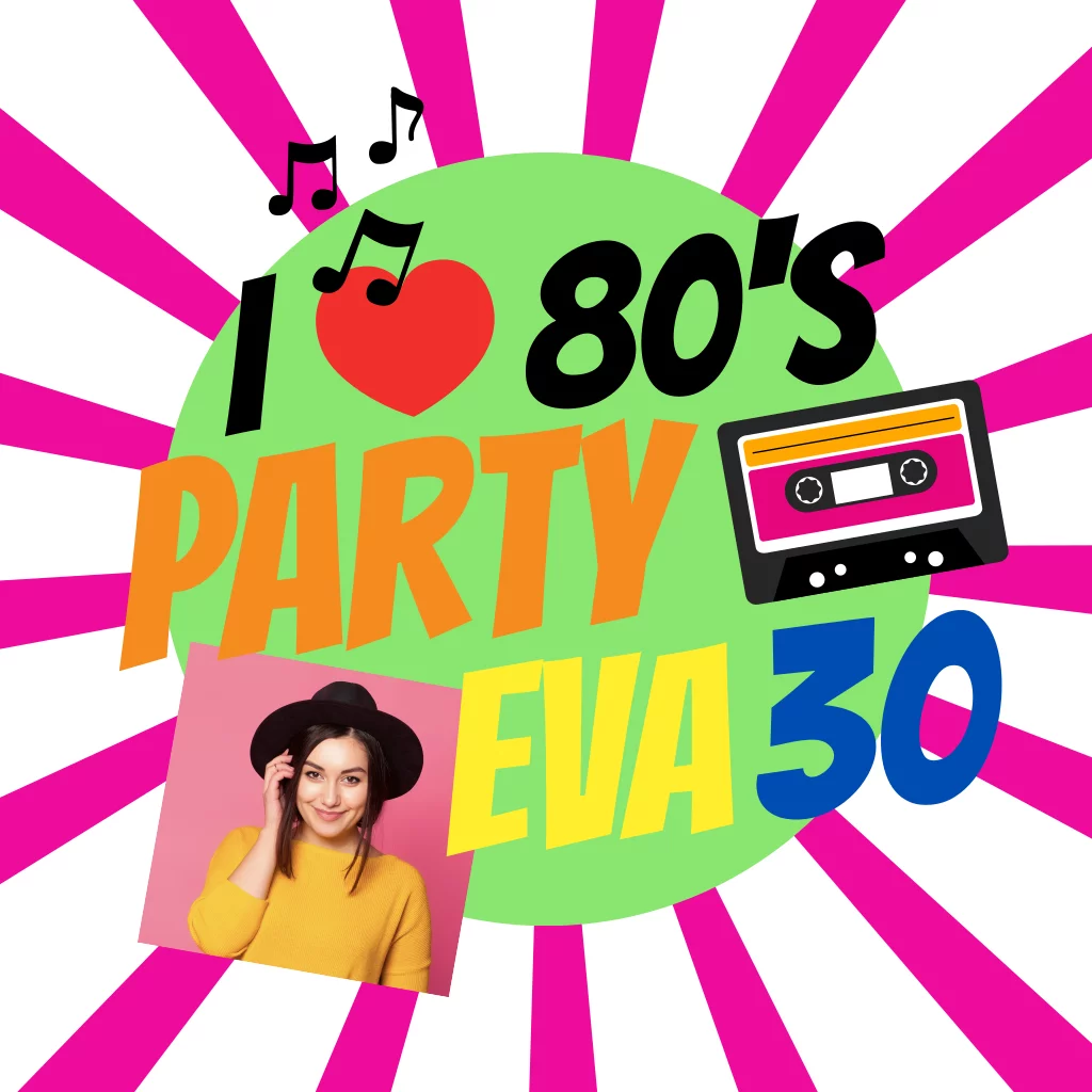 Uitnodiging in disco stijl voor je 30e verjaardag. Nodig al je vrienden uit voor jouw back to the 80s thema feest. Feestelijke eighties kaart met muzieknoten, hartje en cassetteband. Tof met een fel roze envelop.
