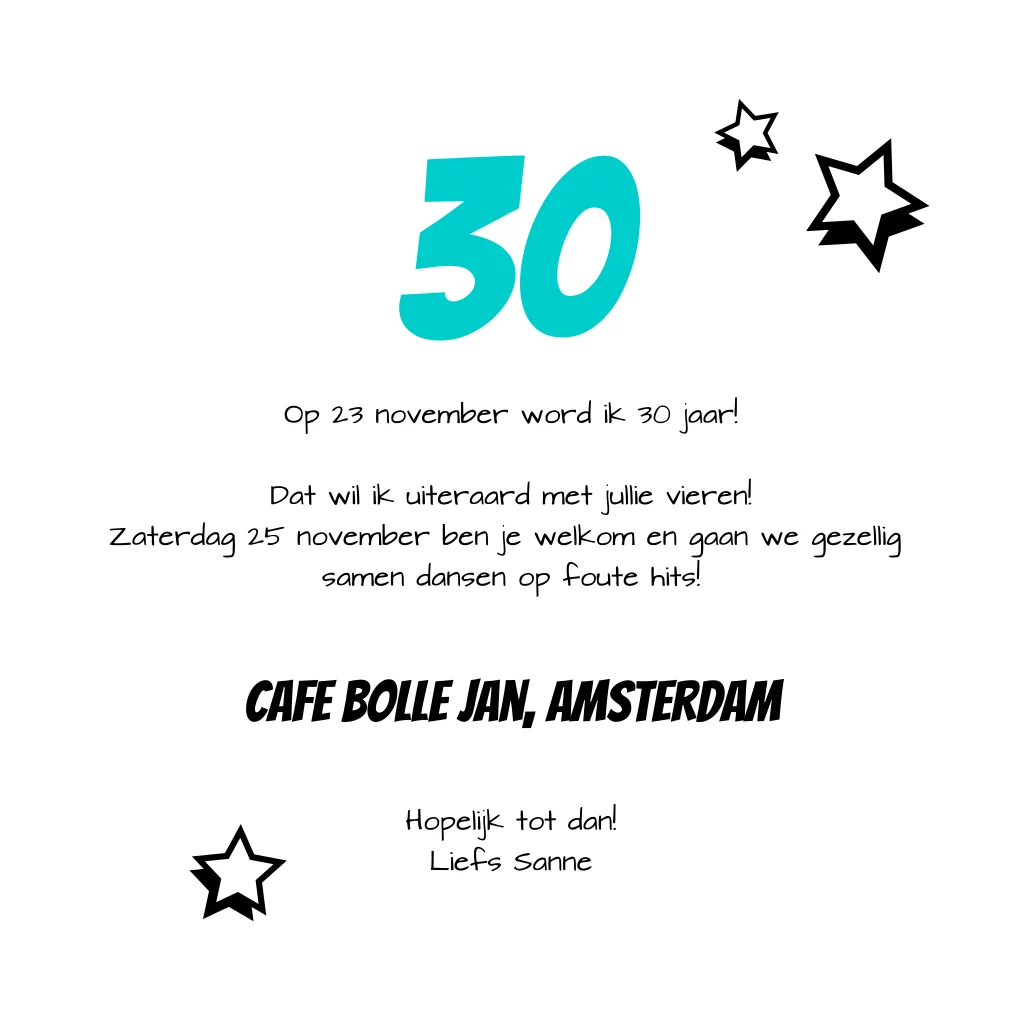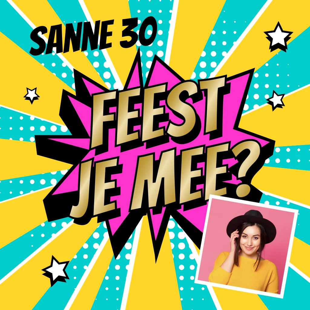 Deze vrolijke uitnodiging in stripstijl past helemaal bij jouw foute feestje. Nodig al je vrienden uit voor jouw 30e verjaardag en vergeet vooral niet te vermelden dat er dresscode is!