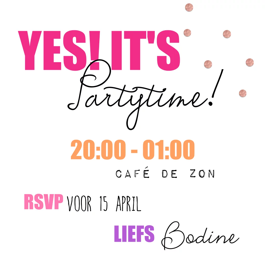 Feestelijke disco uitnodiging met roze neon letters! Perfect voor een fout feestje. Hoe leuk is de dresscode neon/glow in the dark? Dat wordt een bont feestje. Aan de binnenkant is er ruimte voor een persoonlijke foto. Tof met een felle kleur envelop.