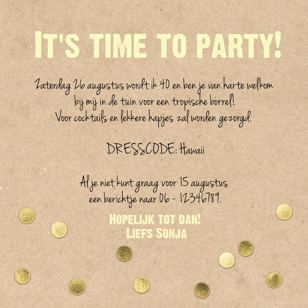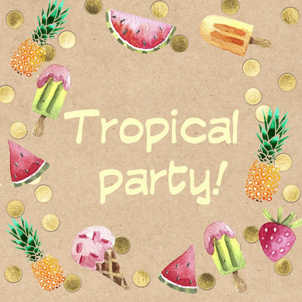 Vier je feestje met een thema! Maak deze vrolijke tropical party uitnodiging helemaal naar wens op met een persoonlijke tekst. Leuk versierd met watercolour elementjes en gouden confetti. Leuk met een bijpassende kleur envelop.