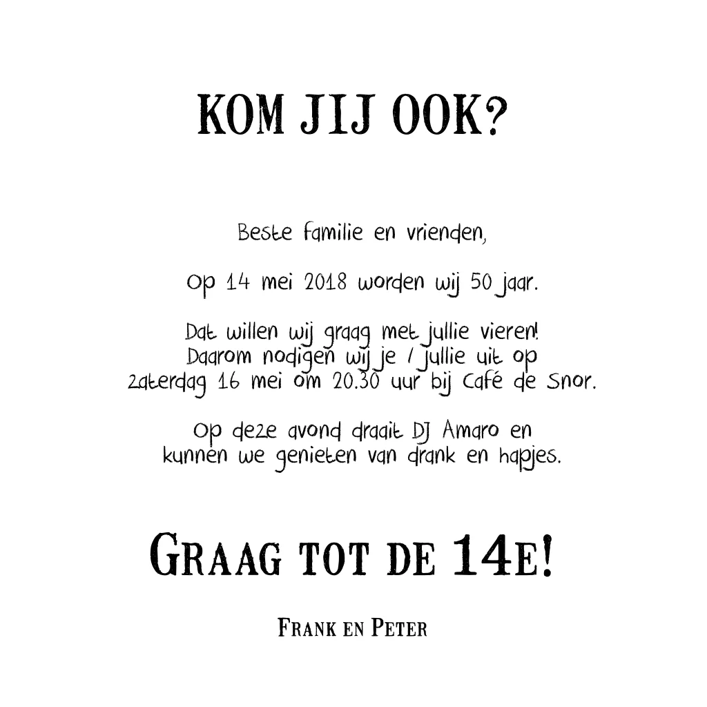 Een leuke illustratieve uitnodiging voor je 50e verjaardag.