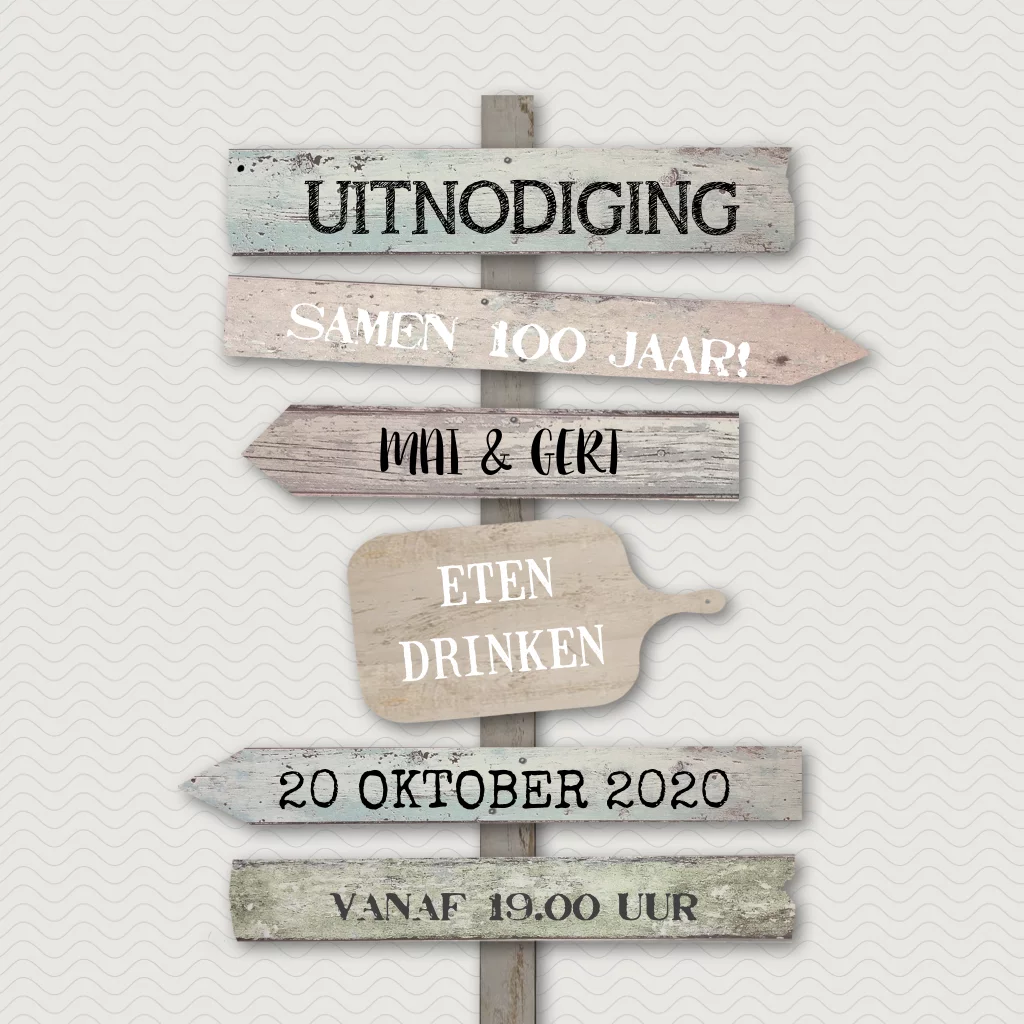 Hippe stoere samen 100 jaar uitnodiging met houten planken