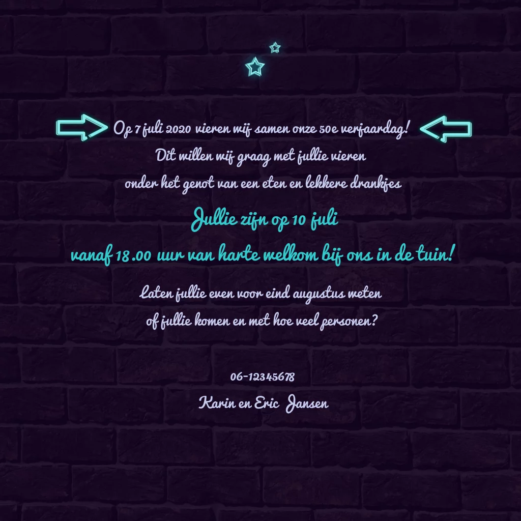 Uitnodiging samen 100 jaar met neon letters