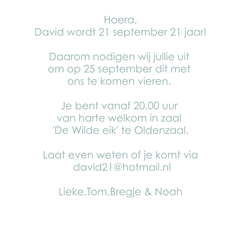 Uitnodiging 21 jaar