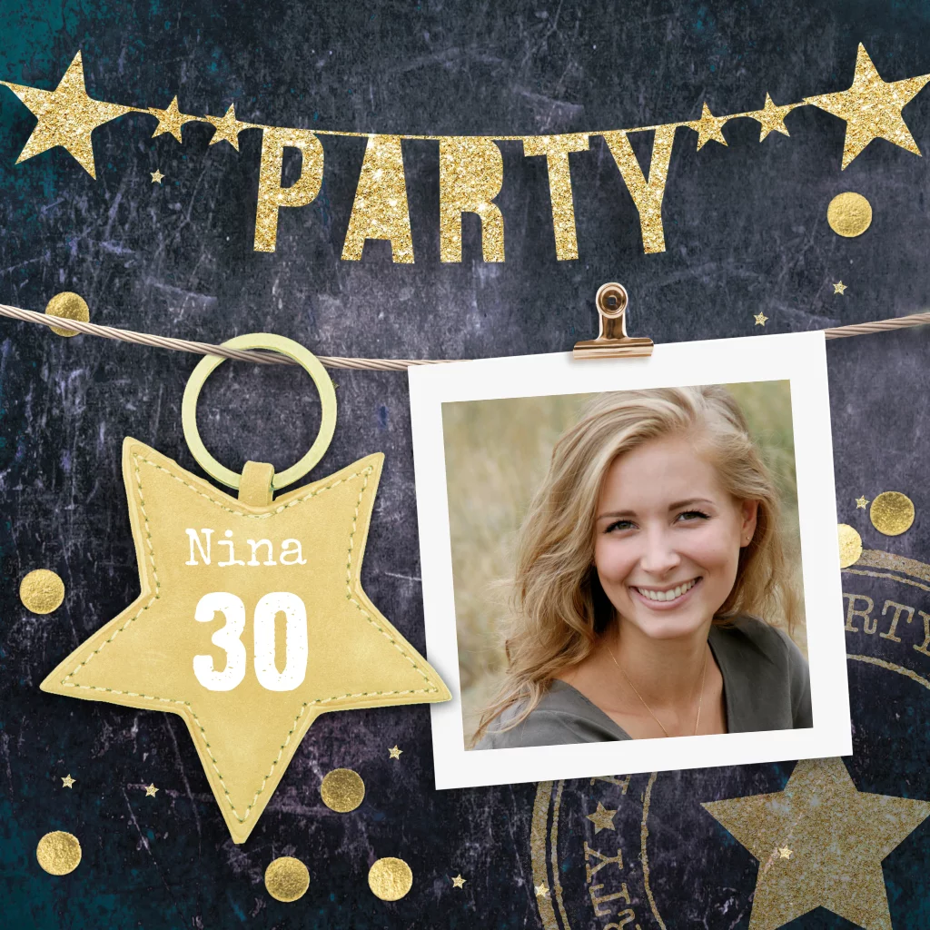 Verras je familie en vrienden met deze stoere 30 jaar verjaardag uitnodiging. Extra persoonlijk door een foto van jezelf op de kaart te plaatsen.