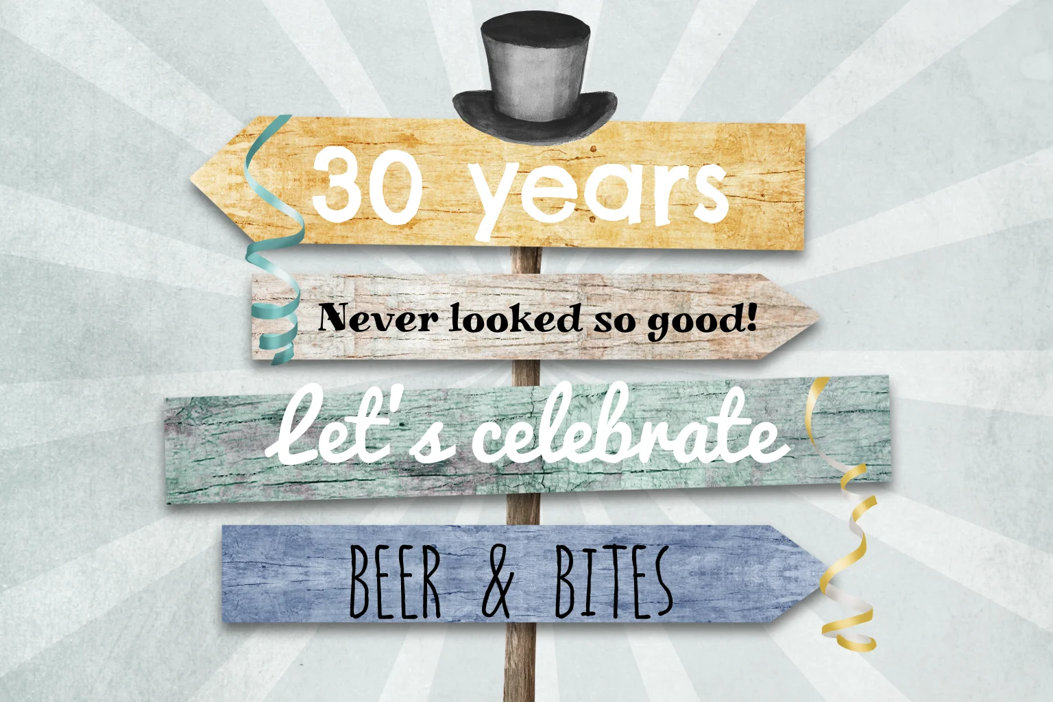 Uitnodiging verjaardag 30 jaar met vrolijke wegwijzer