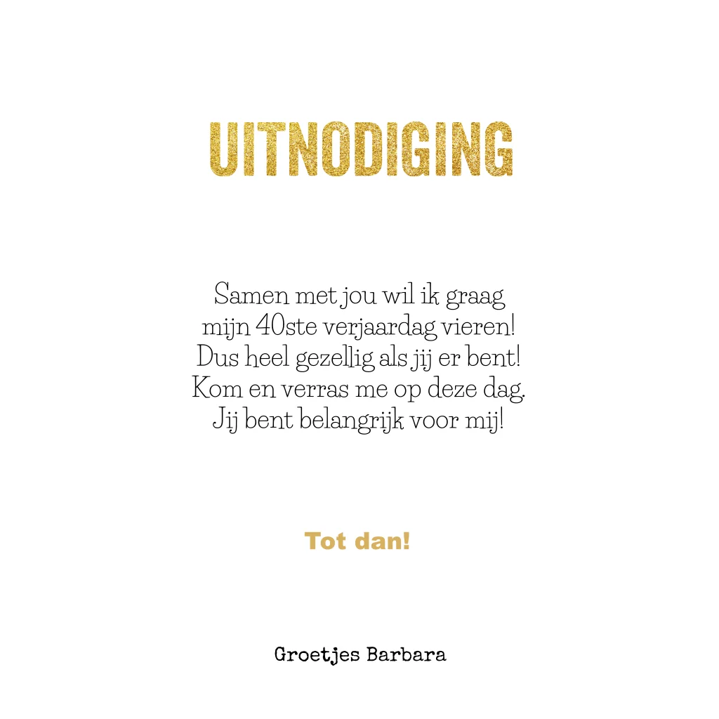Fotokaart voor 40 jaar verjaardag met goud glitter