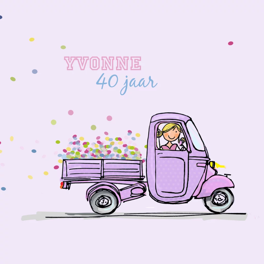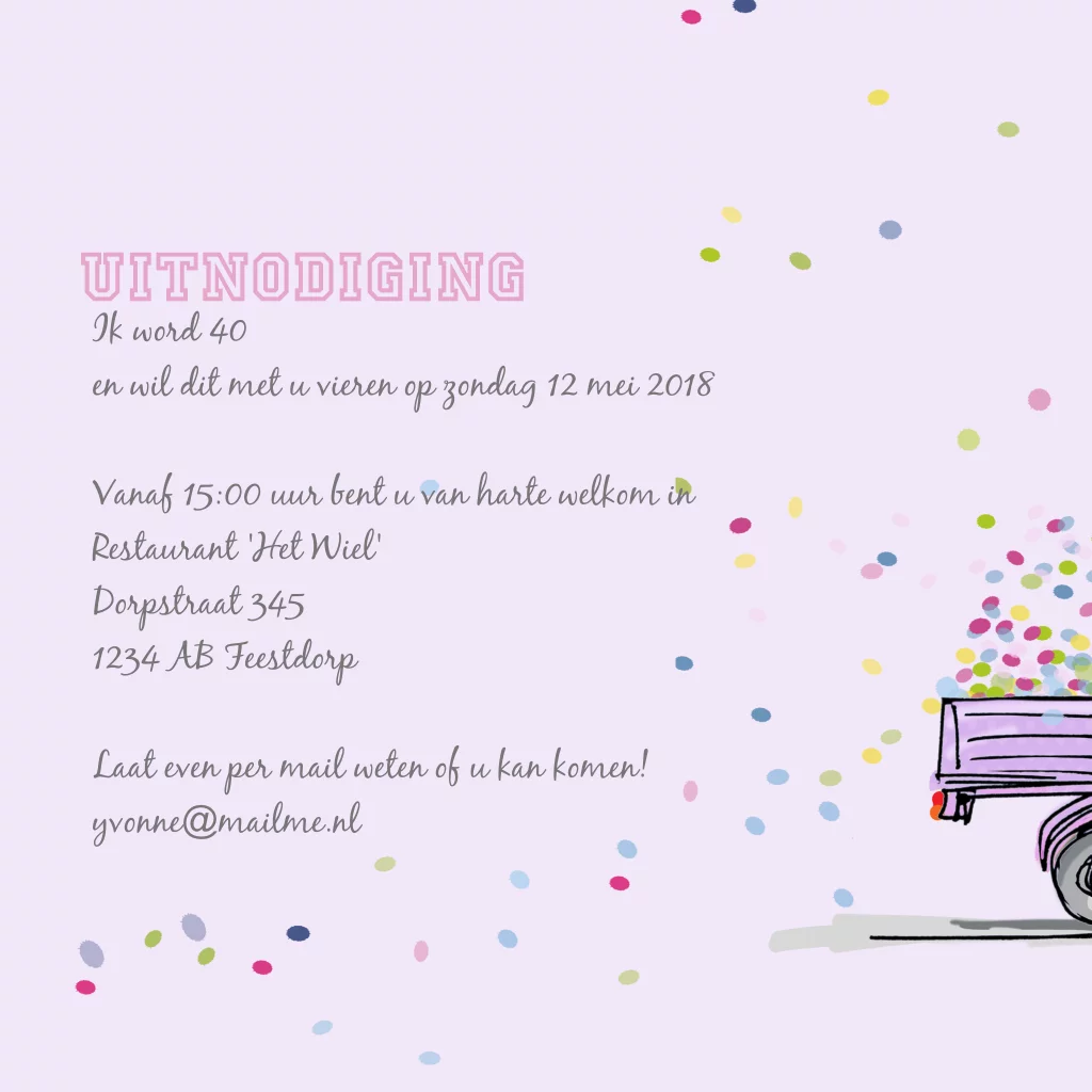 Uitnodiging verjaardagsfeest met paarse vrachtschooter