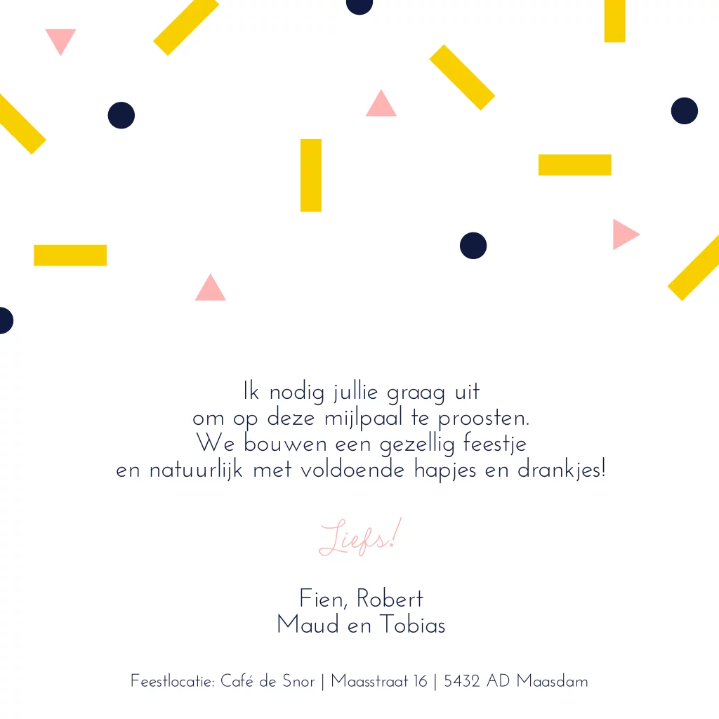 Uitnodiging 40 jaar met feestelijke printjes en foto