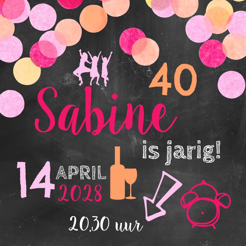 Confetti uitnodiging op krijtbord voor een 40e verjaardag