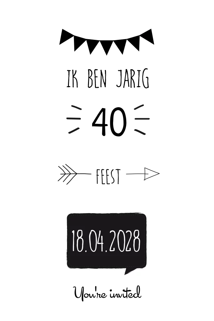 Nodig familie en vrienden uit met deze uitnodigingskaart voor je veertigste verjaardag.