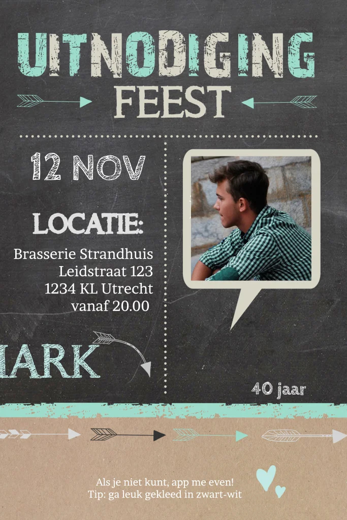 Uitnodiging verjaardag met krijtbord, mint en karton