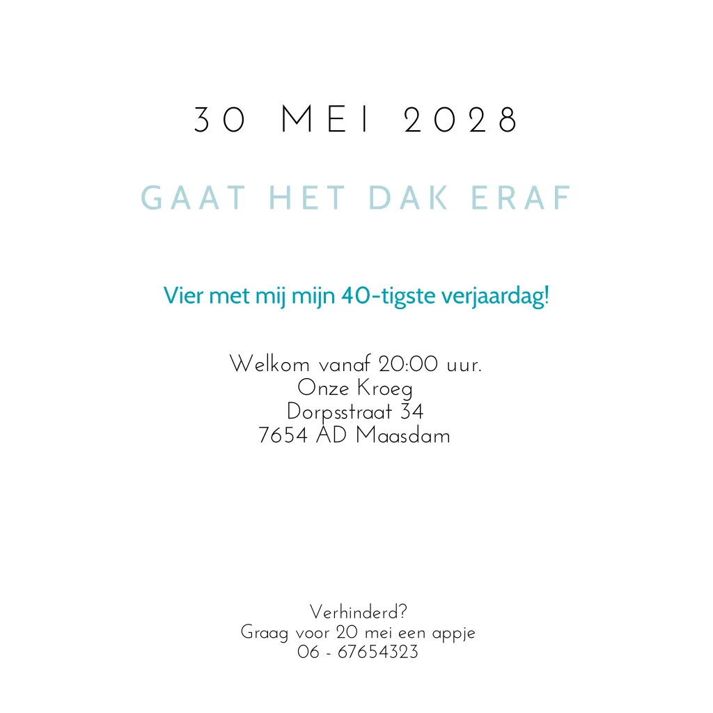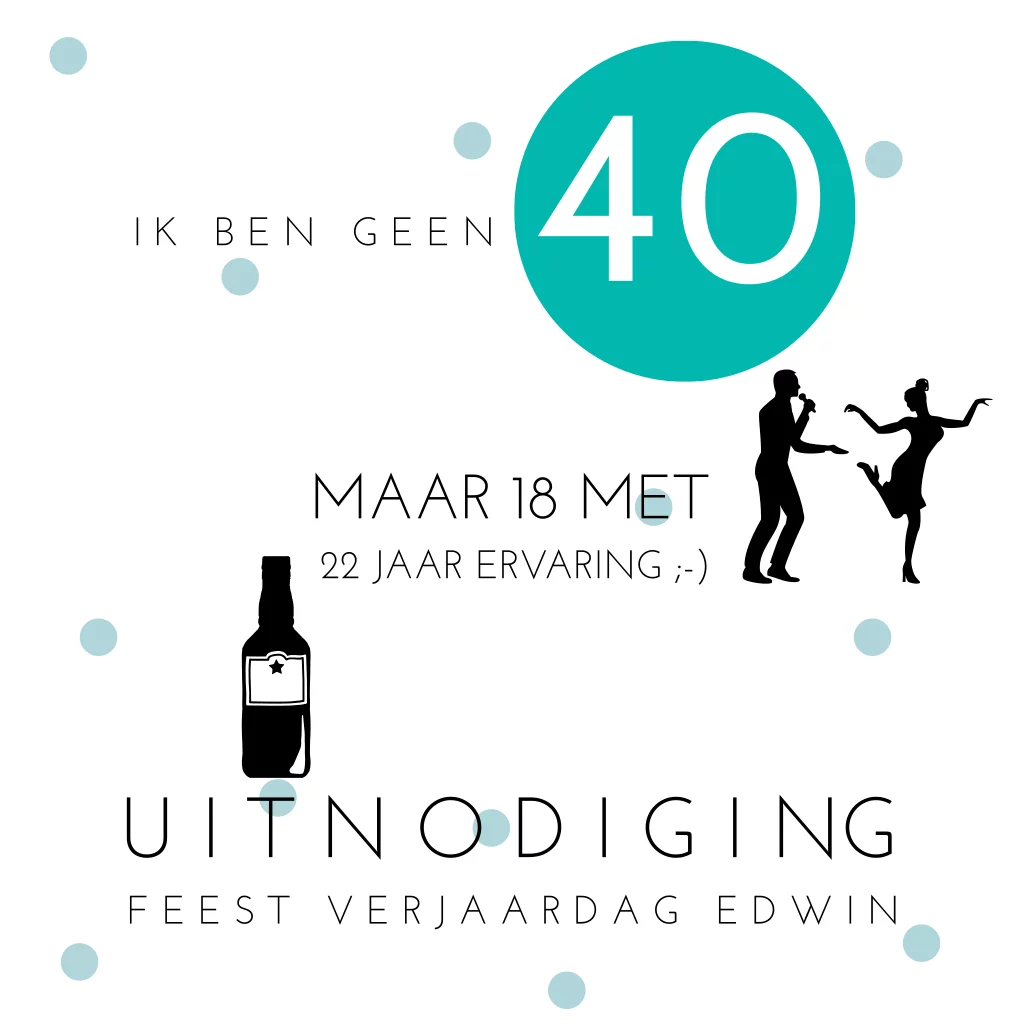 Rustige maar feestelijke uitnodiging 40e verjaardag. Life is better with friends, dus vier het samen met je vrienden! Witte kaart met illustraties en turquoise kleuren. Proost op jouw levenservaring!