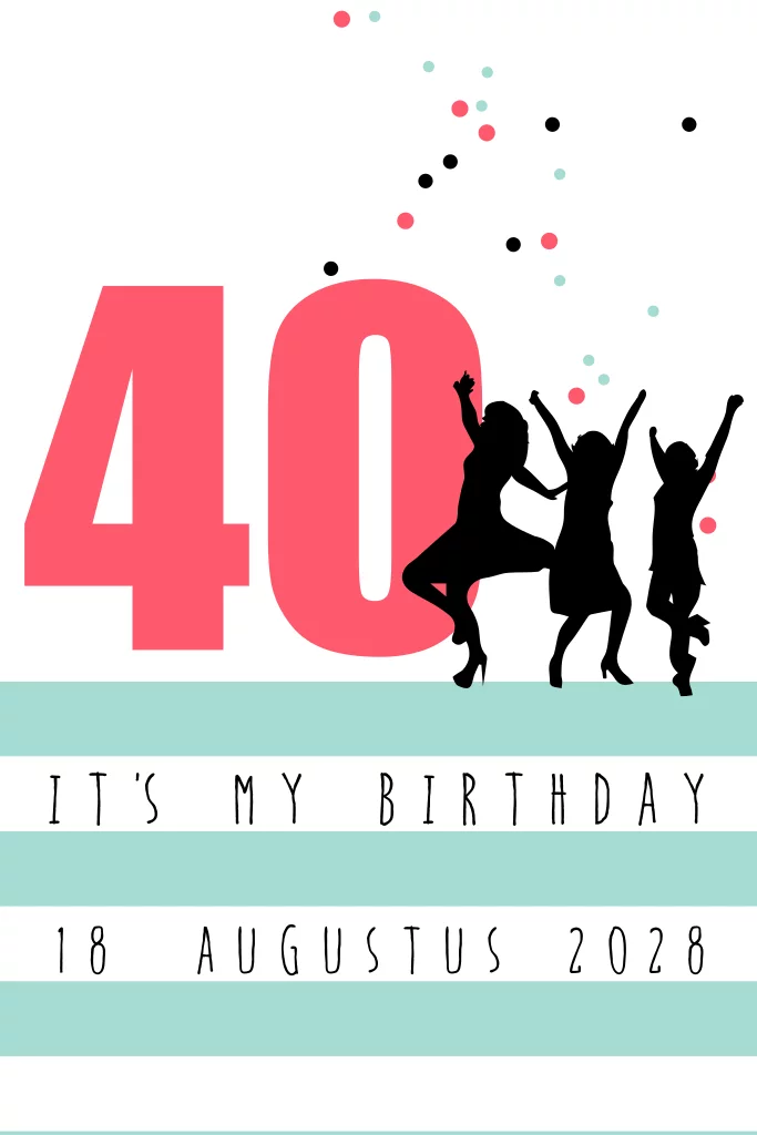 Verras je familie en vrienden met deze feestelijke 40 jaar verjaardag uitnodiging. Extra feestelijk door de confetti en illustraties.