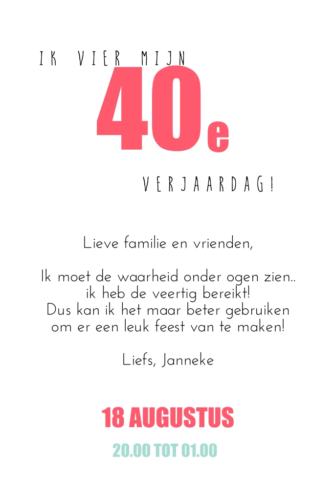 Vrolijke uitnodiging voor je 40e verjaardag met confetti!