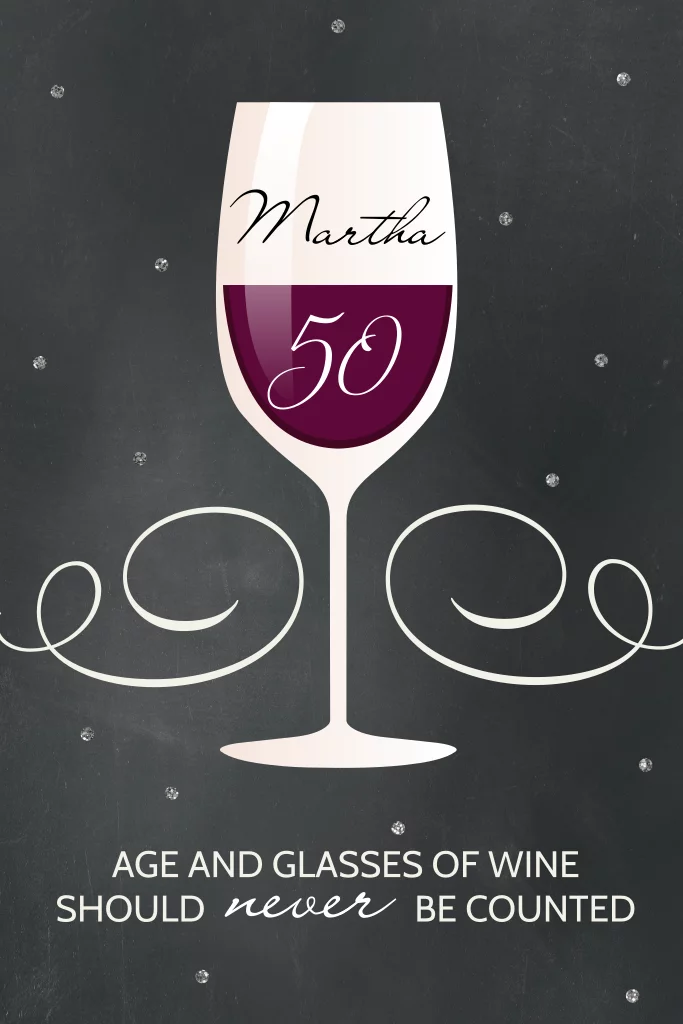 Uitnodiging 50 jaar met wijnglas op krijtbord