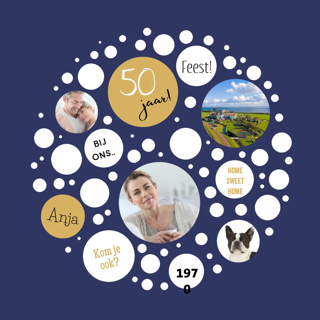 Uitnodiging 50 jaar verjaardag met rond fotokader