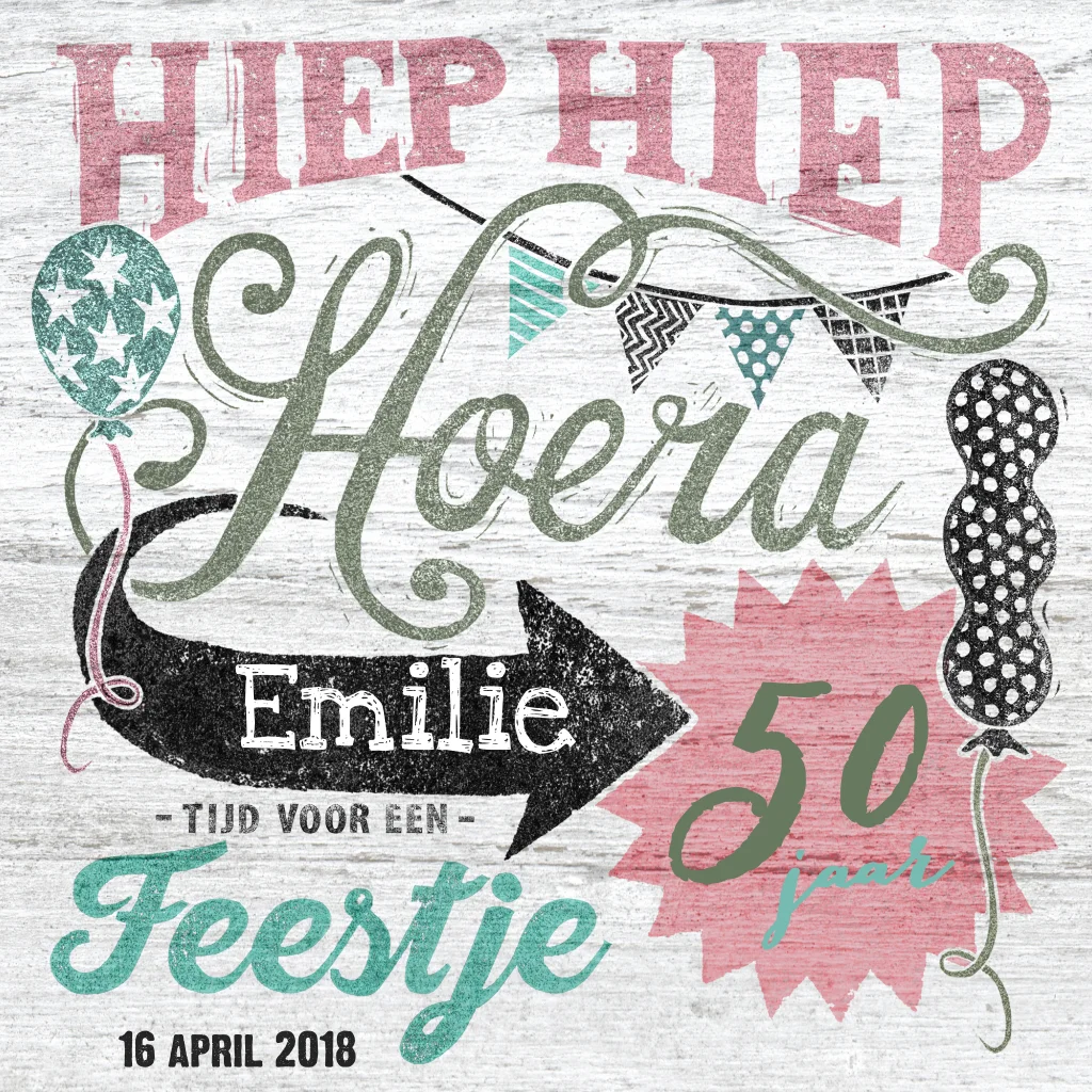 Frisse verjaardagskaart voor een 50 jarige dame! Helemaal volgens de laatste trends. Pas de teksten aan en verstuur deze hippe kaart aan al je vrienden en familie. Maak het af door te kiezen voor een roze envelop!