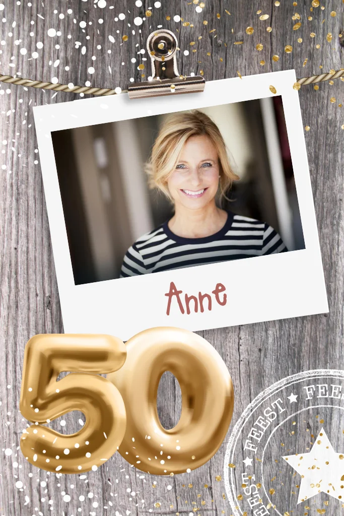 Vier je 50e verjaardag met deze polaroid uitnodiging. Personaliseer eenvoudig in onze editor.