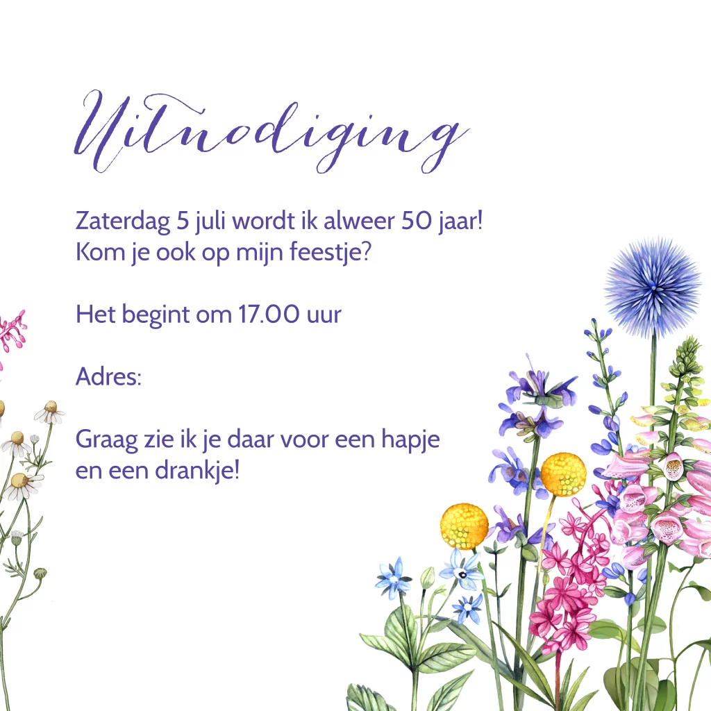 Uitnodiging verjaardag 50 jaar vrouw veldbloemen