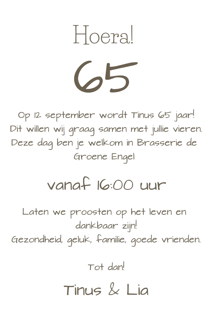 Uitnodiging 65 jaar