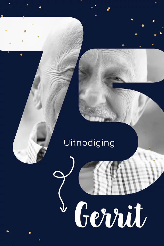 Uitnodiging 75 jaar verjaardag met foto op donkerblauw