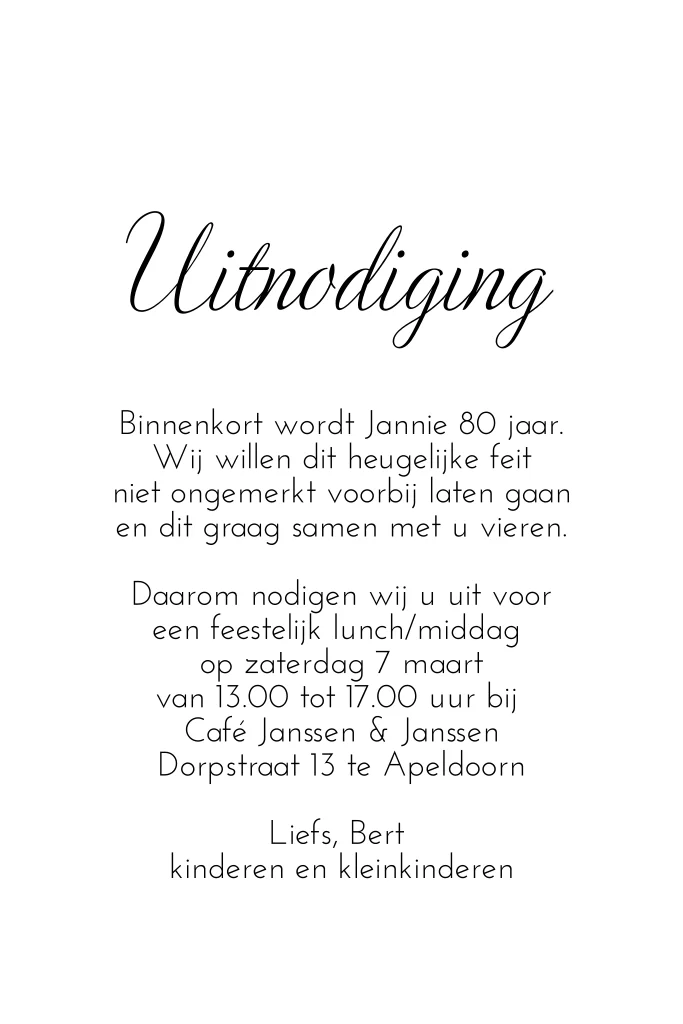 Uitnodiging 80 jaar maken