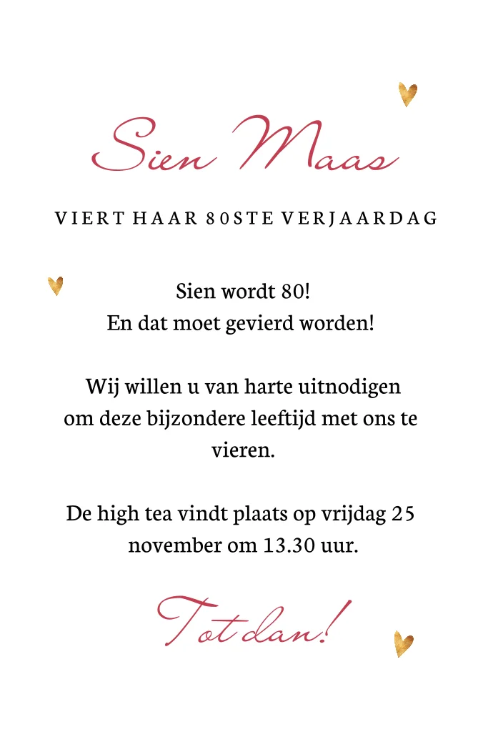 Uitnodiging 80e verjaardag met high tea