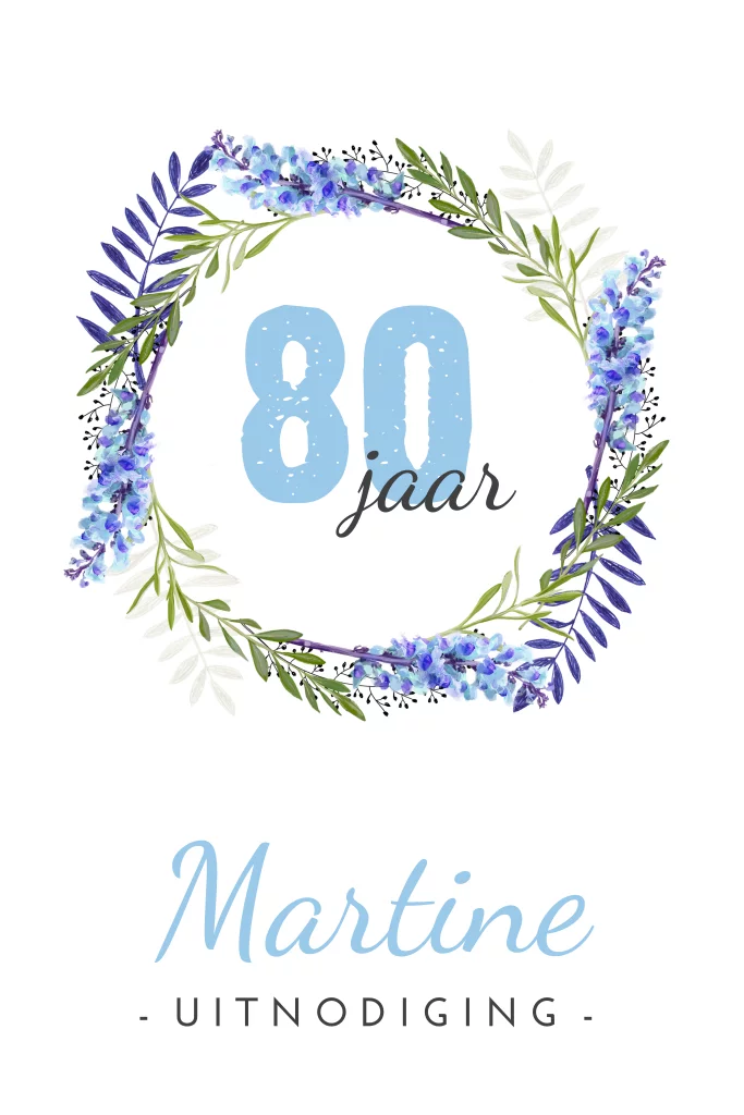 Uitnodiging 80 jaar met blauwe krans
