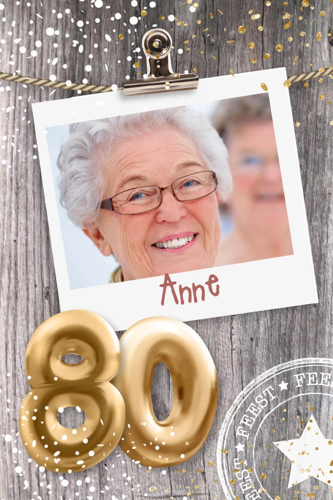 Vier een speciale 80ste verjaardag met deze unieke kaart. Personaliseer eenvoudig in onze online editor.