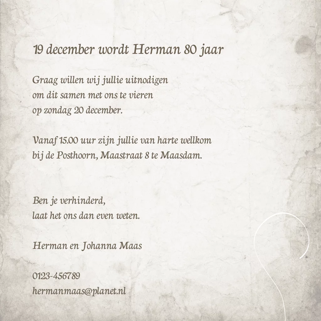 Uitnodiging 80 jaar maken
