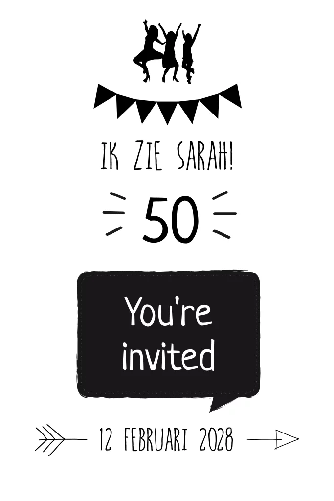 Helemaal van nu! Deze uitnodiging voor je vijftigste verjaardag, met slingers en leuk tekstvlak.
