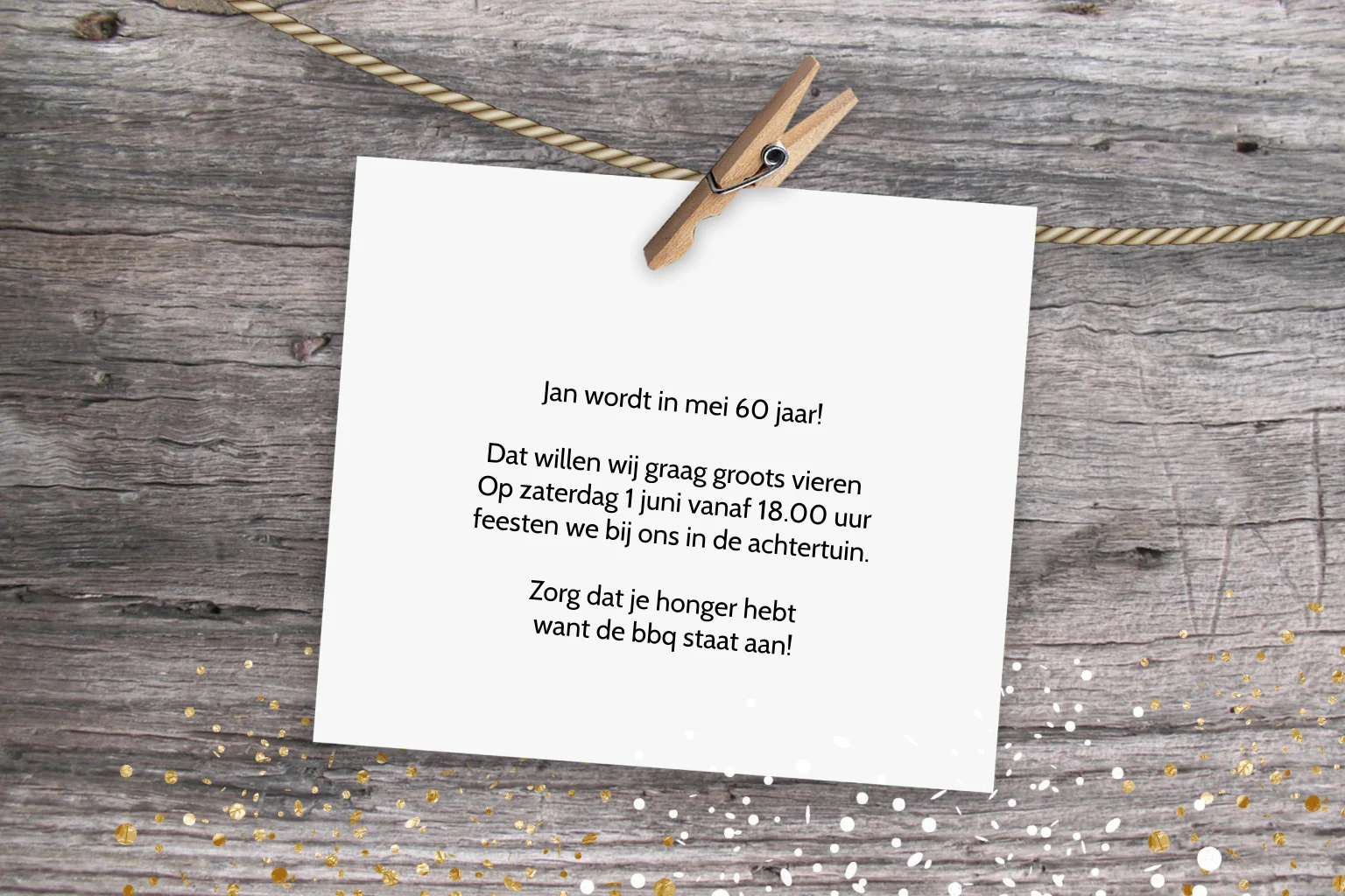 Vier 60 jaar met deze houten slinger jubileumkaart. Pas het ontwerp aan in onze online editor.