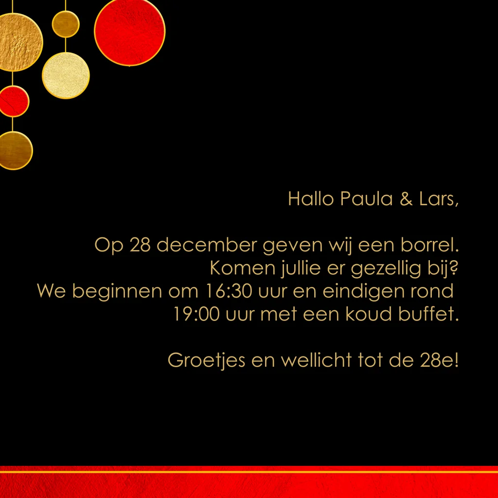 Een chique kaart om mensen mee uit te nodigen voor een borrel, diner of andere gelegenheid.