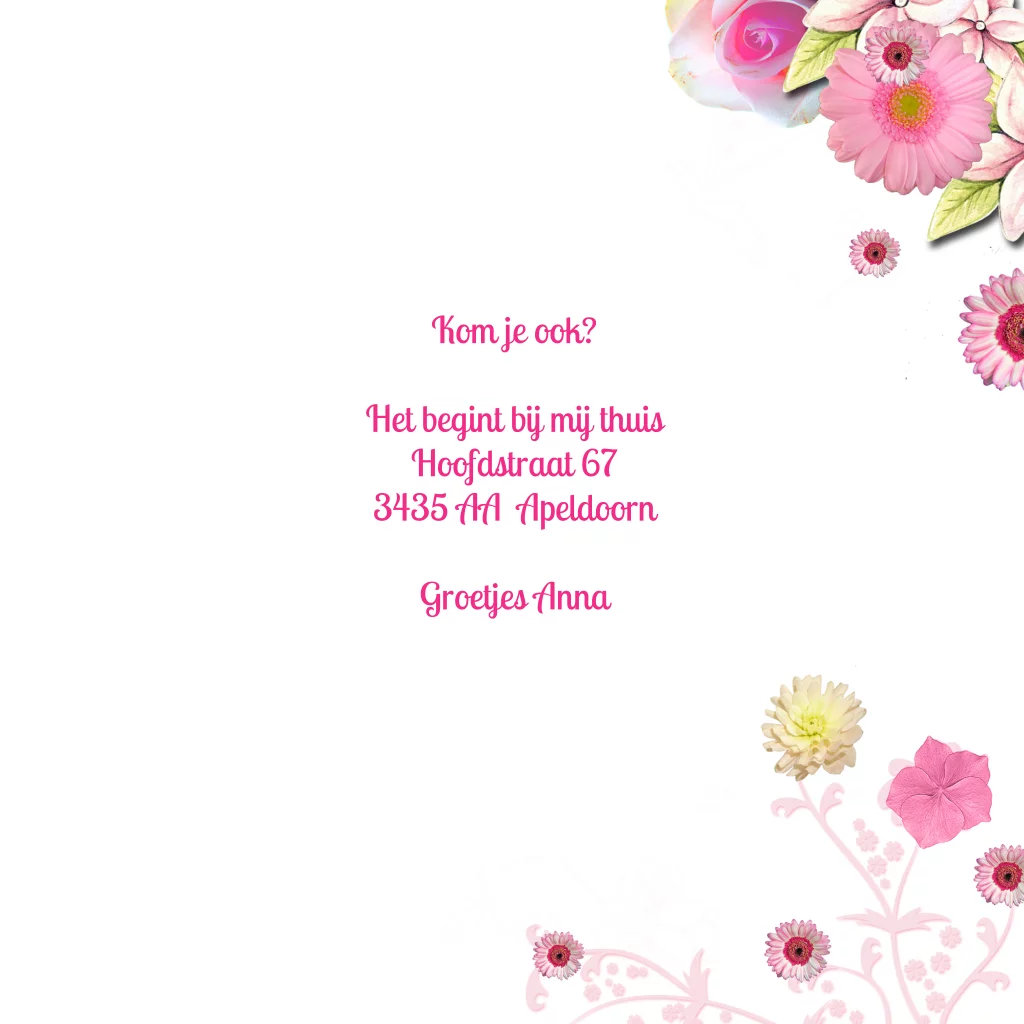 Dit kaartje heeft een romantische stijl met allemaal verschillende bloemetjes en een mix tussen foto's en geschilderde afbeeldingen.
